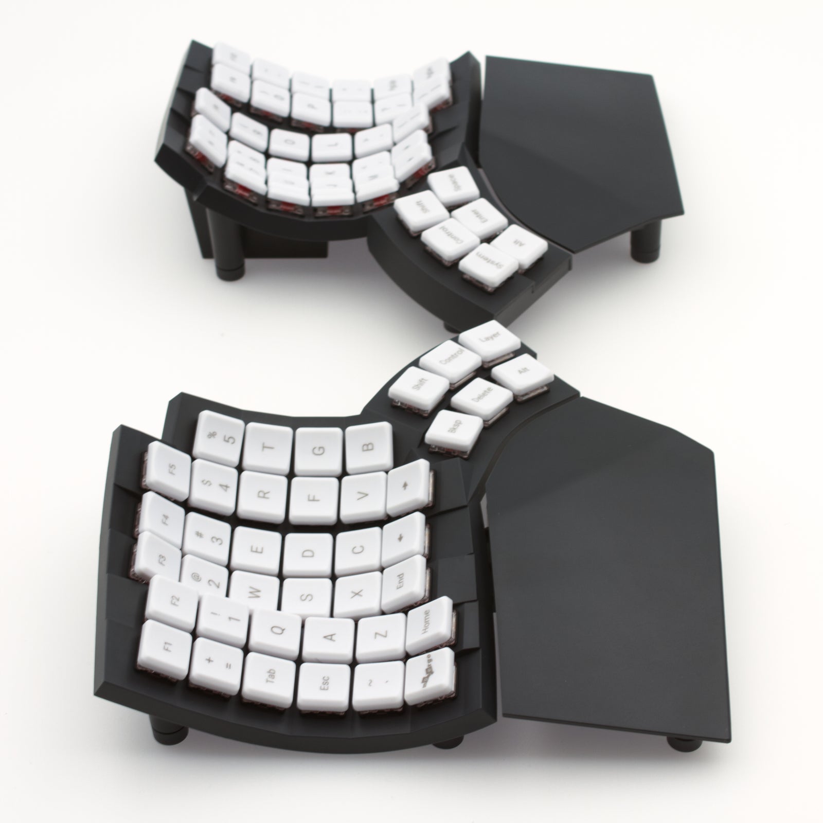 Because each row is at a different angle, you very quickly become able to tell exactly where your hands are positioned on the keywell by feel without needing differently shaped homing keys to locate the home row.