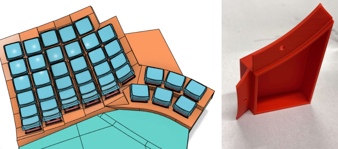 This forms the basis of the Glove80 curved two-row thumb cluster, which was then further refined by lots more empirical testing. Some particular aspects that took a lot of iteration to get right were the spacing and tilt for each row, and the amount of staggering between the top and bottom rows.